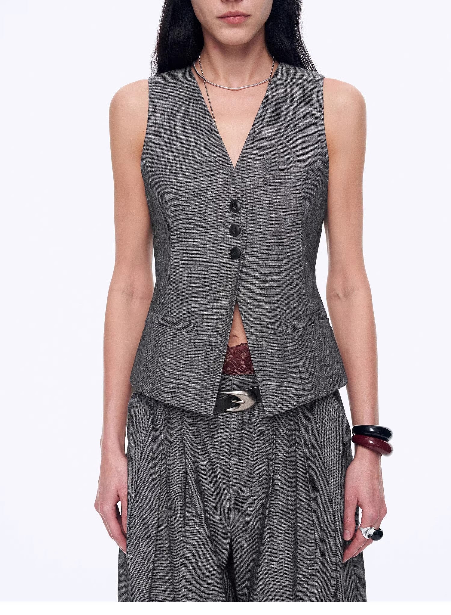 "Old Money Space" Linen Draped Vest and Straight Trousers Suit