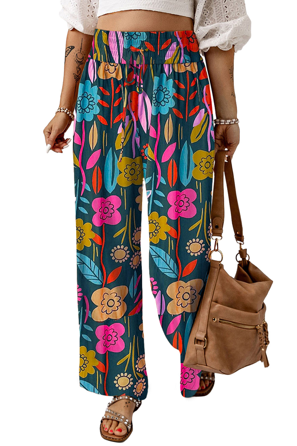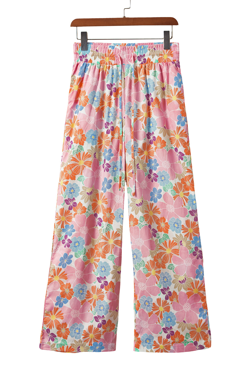 Pink Floral Smocked Elastic Waist Loose Pants